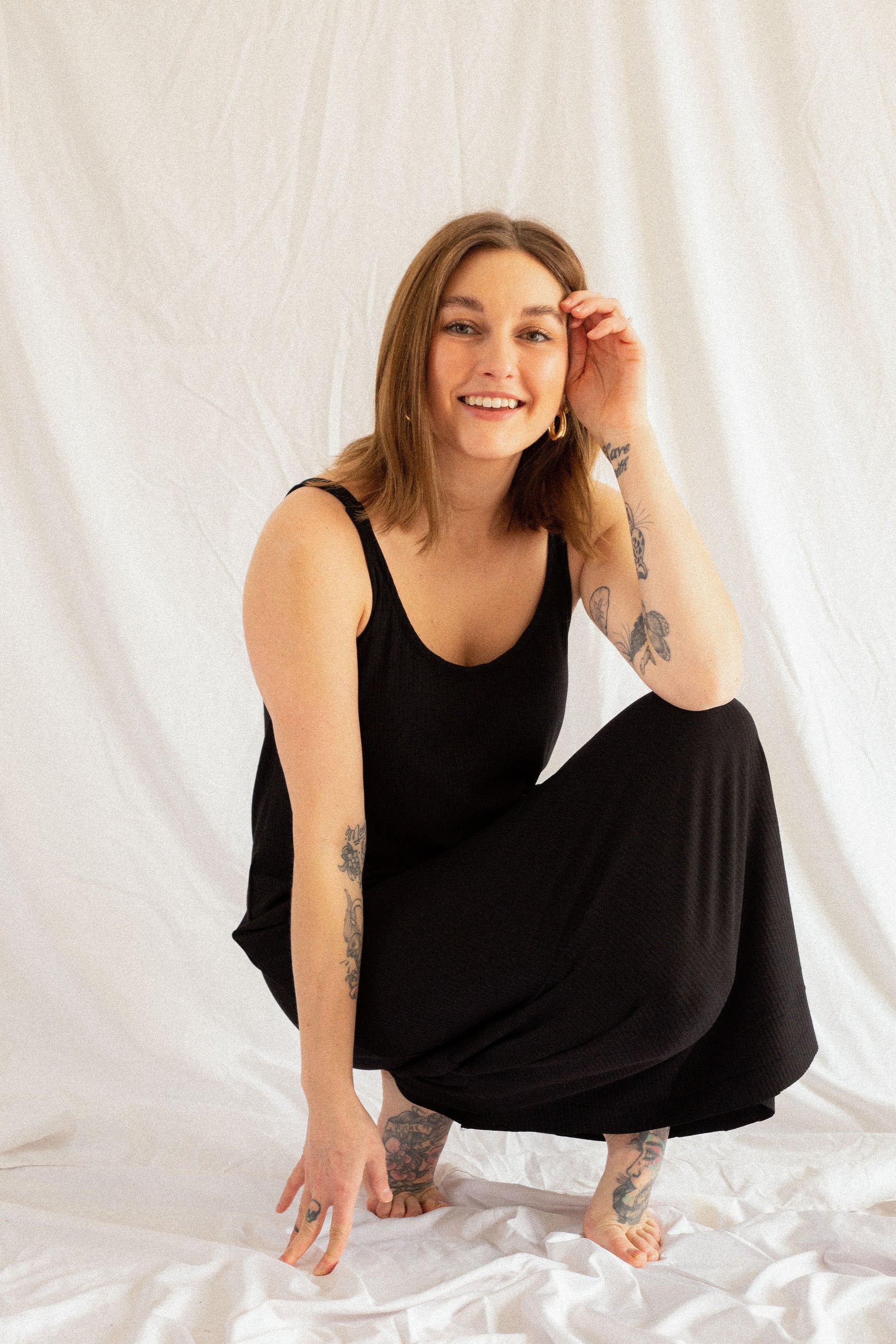 This tank style dress will be your new go to! Soft and stretchy rib knit fabric is breathable and comfortable. Scoop neck and scoop back with tank straps allow for coverage with most bras. This dress was designed to be a little oversized, so if your looking for a more fitted look size down :)