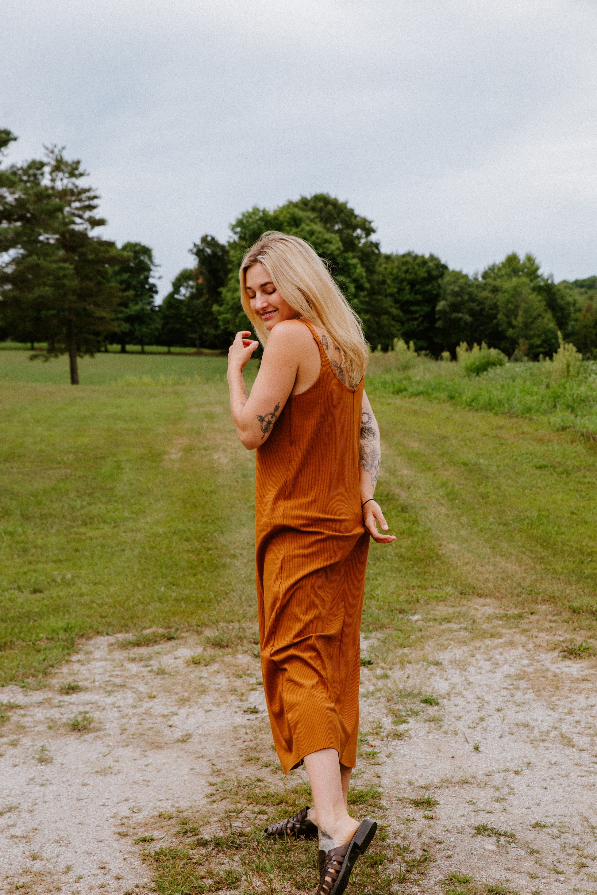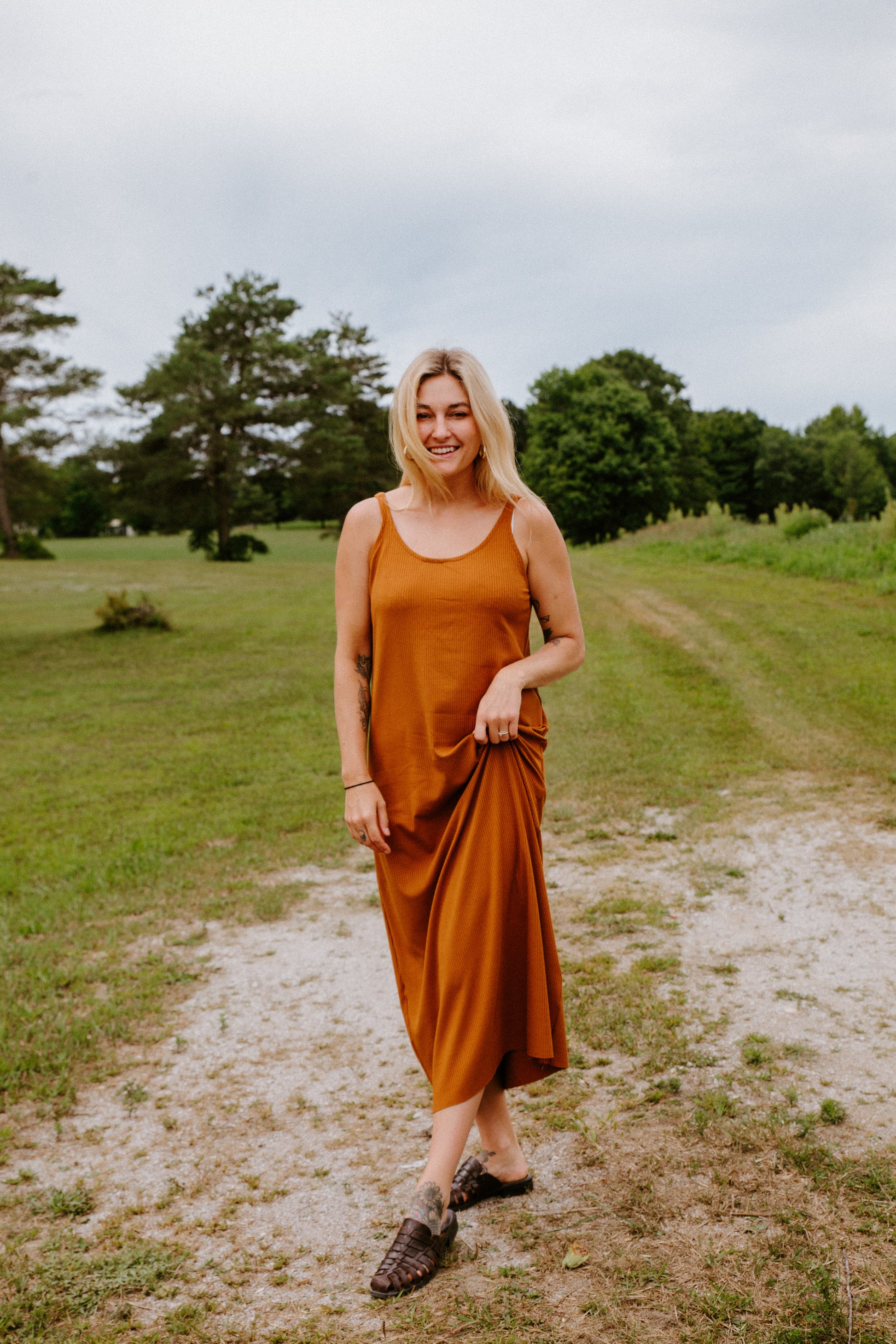 This tank style dress will be your new go to! Soft and stretchy rib knit fabric is breathable and comfortable. Scoop neck and scoop back with tank straps allow for coverage with most bras. This dress was designed to be a little oversized, so if your looking for a more fitted look size down :)